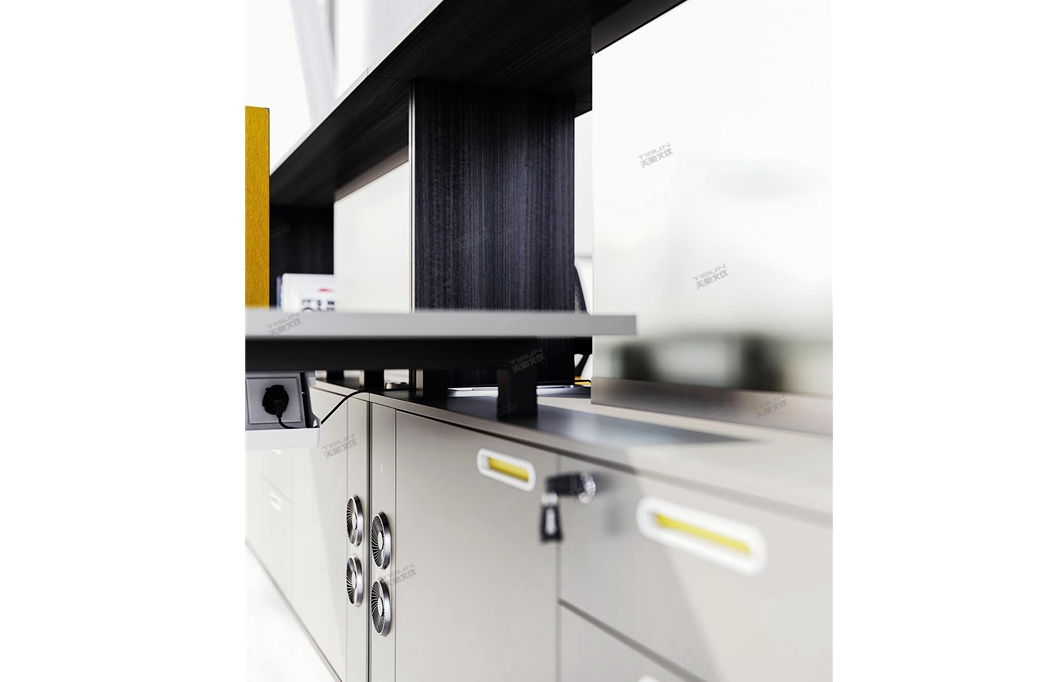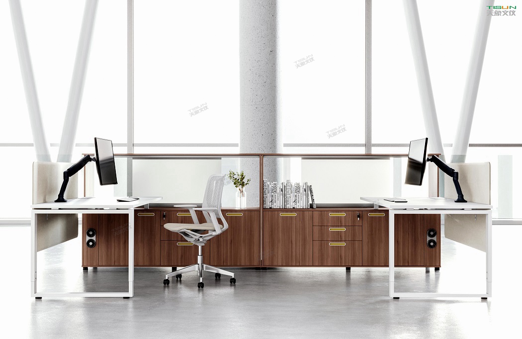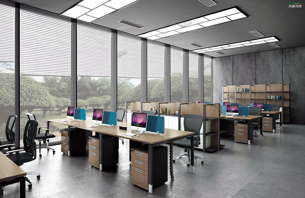 境由心造,思想領域超越于空間,員工桌簡約的設計展現(xiàn)了現(xiàn)代都市感,真心的設計,帶著一種生活的準確度,精確的敲擊,在工作與生活中完美呈現(xiàn)。這種輕松、和諧、明快、環(huán)境趨向人格化,帥氣十足,專業(yè)可靠。